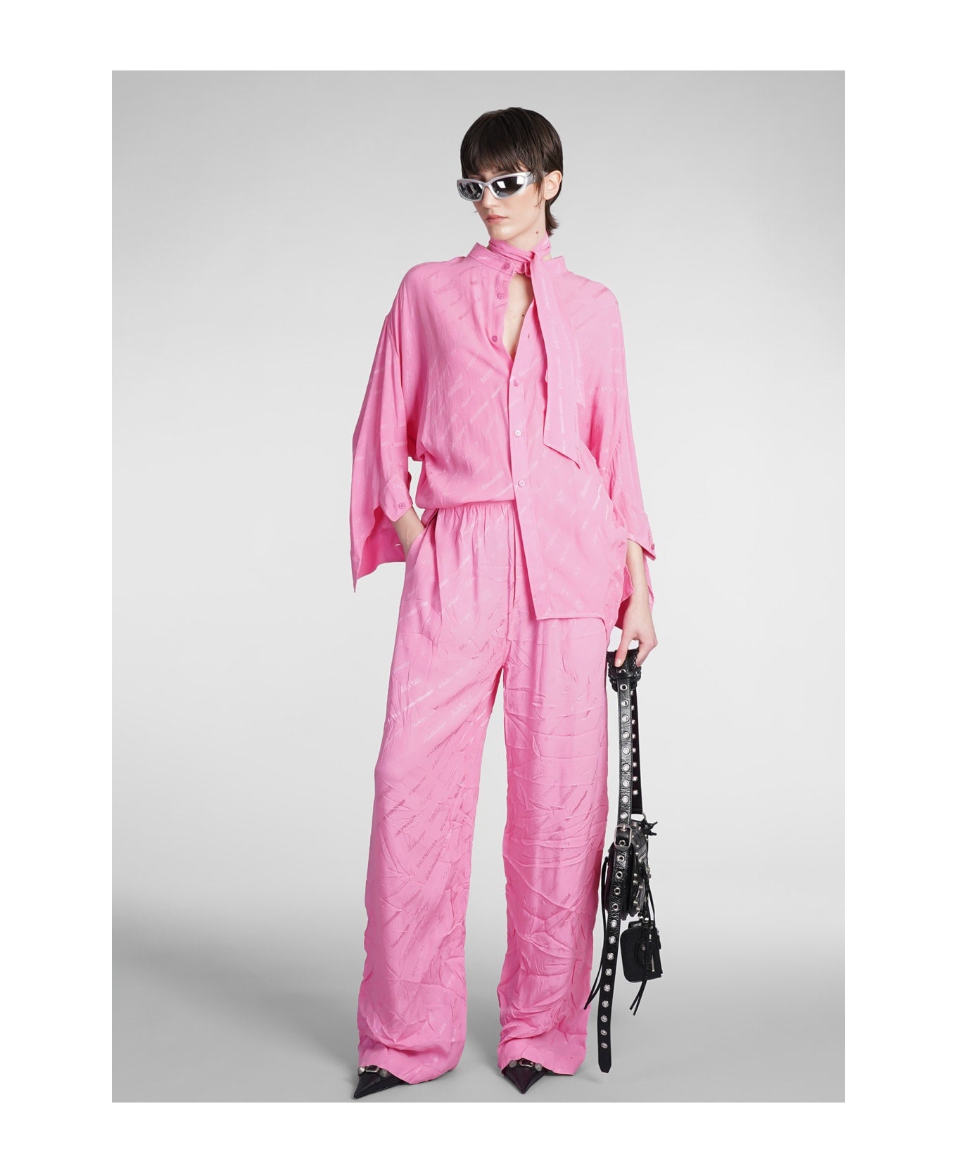 Balenciaga Logo All Over Silk Pants
